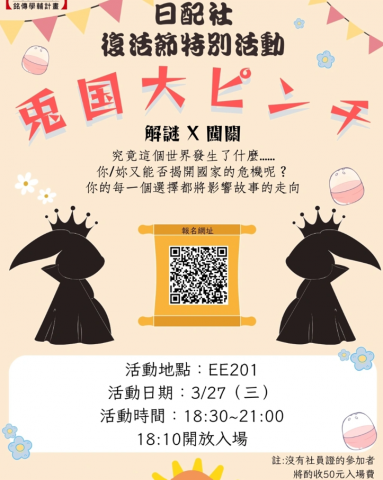 1.報名截止日為3/26(二),人數有限,報名要快喔!