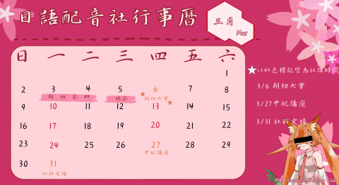 三月的行事曆來了~讓我們來看看這個月有哪些活動吧!